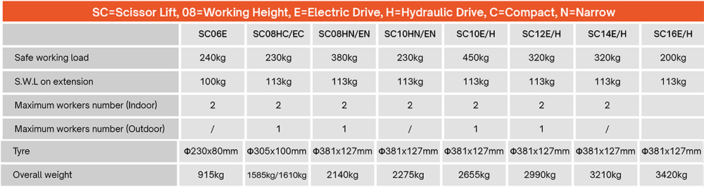 Bạn có thể dễ dàng kiểm tra tải trọng của xe nâng người cắt kéo trong thông số kỹ thuật như trên.